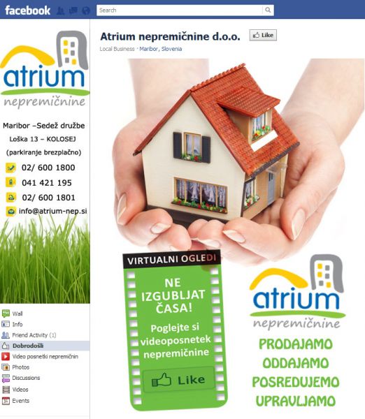 Nepremičninska agencija ni nujno med kandidati z visokim potencialom na Facebooku. Vendar številčnost baze ni vse, pomemben je še marsikateri drug dejavnik. Poglejmo, kako gre strani Atrium nepremičnine d.o.o.