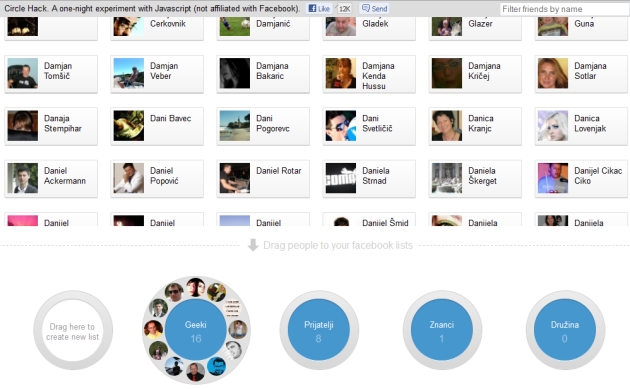Pa je nekaj Facebook inženirjev v svojem prostem času (mene ti krogi neprestano spominjajo na pizzo) pljunilo v roke in naredilo FB verzijo krogov prijateljev. Popolnoma delujočo aplikacijo (ki ni še uradno priznana s strani Facebooka), za katero ustvarjalci pravijo, da je nastala čez noč najdete na naslovu www.circlehack.com
