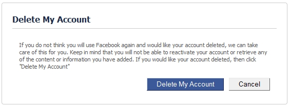 Imate dovolj Facebooka in virtualnega druženja z ljudmi, ki jih nikoli niste, niti ne boste srečali za šankom? Vam gre na živce nova časovnica, vas bolijo rebra od neprestanega dreganja čudakov? Ne bi šli na kavo ravno z vsakim, ki ima pet minut časa in visi na klepetu? Facebook je uvedel funkcijo "delete my account". Vaš FB profil lahko izbrišete za vedno! Seveda te funkcije na razglašajo na glas, saj jim je vsak uporabnik pomemben. A očitno so podlegli pritisku svetovne javnosti in uradnih inštitucij.